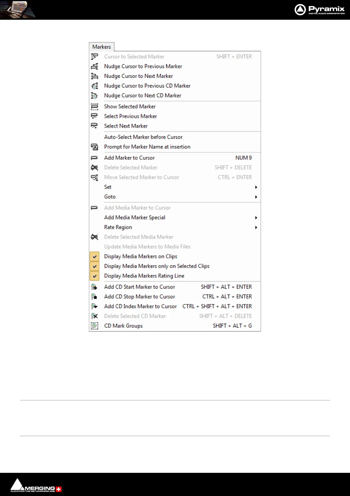 Cursor to Selected Marker [Shift + Enter]Moves the Play Cursor to the Selected Marker