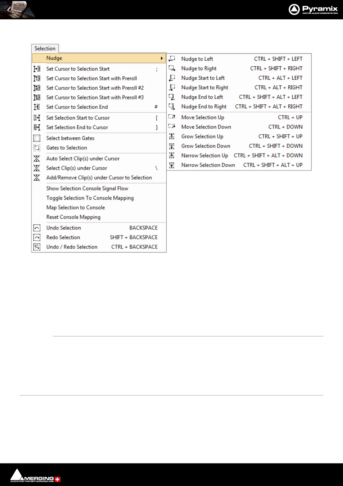 Narrow Selection Up Removes the current selection from the Track above its current position