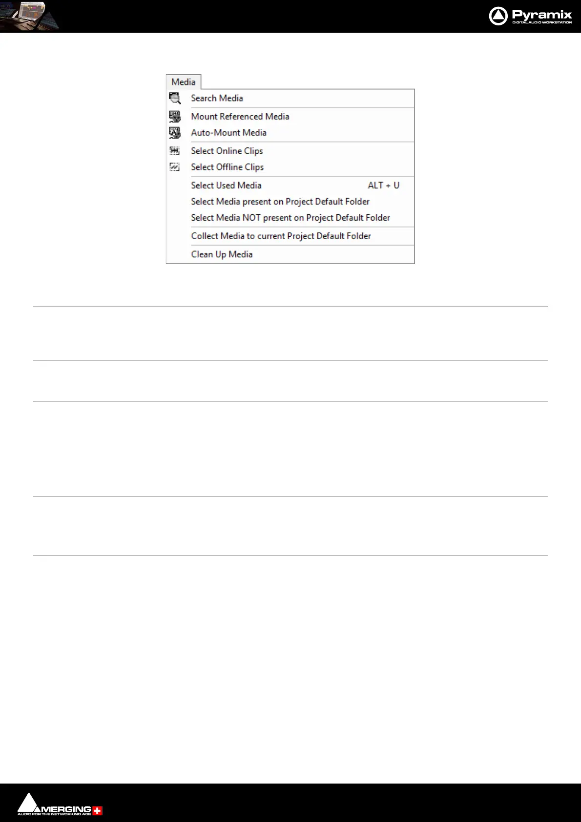 Select Used Media Opens a floating Media Manager window containing all Media used by the current Proj-