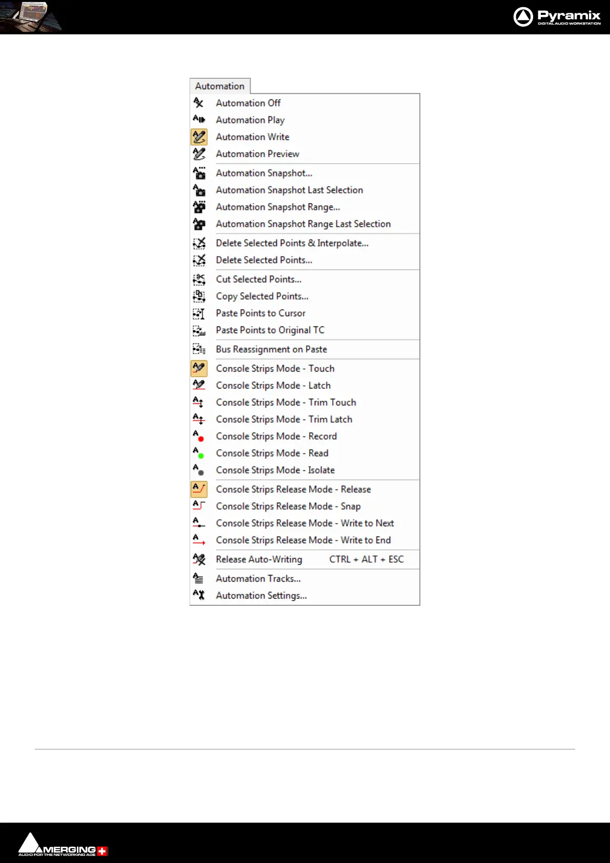 Automation Write Automation system is set to playback any previously recorded automation data and