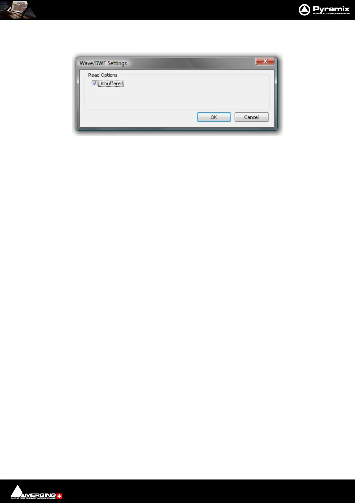 If Wave is chosen as the Format then the Settings button becomes active. When clicked the Wave/BWF Settings
