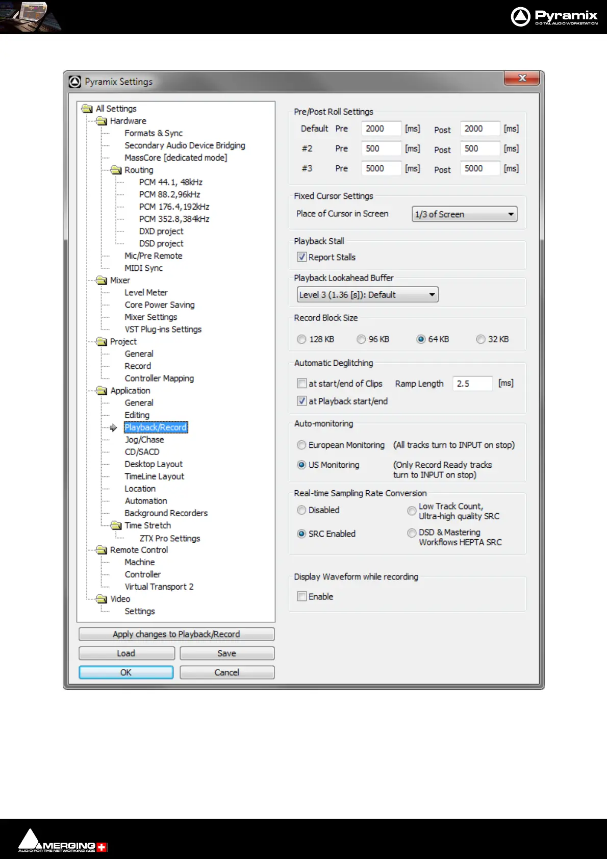 Allows values to be set for the Default and two alternative Pre and Post-roll settings.