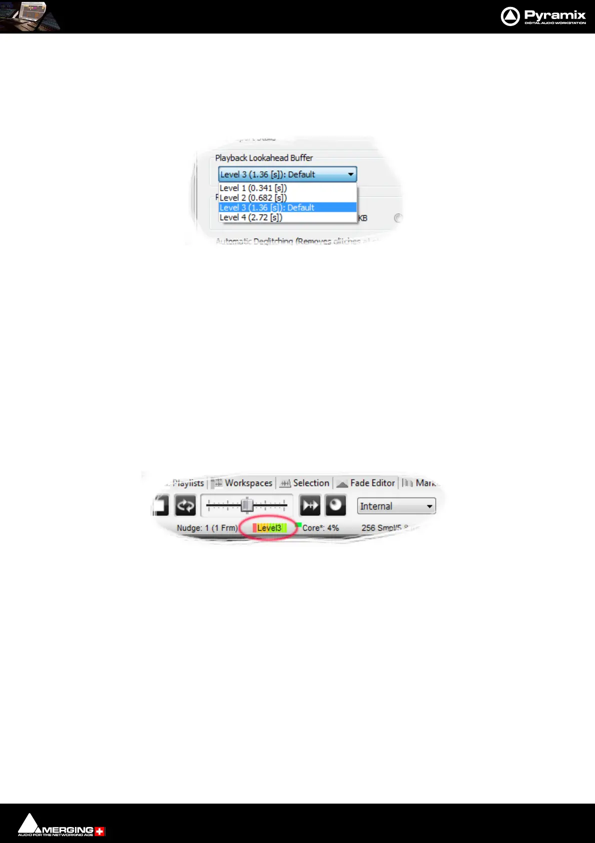 The current Buffer Level is shown in the Pyramix Info bar during normal operation: