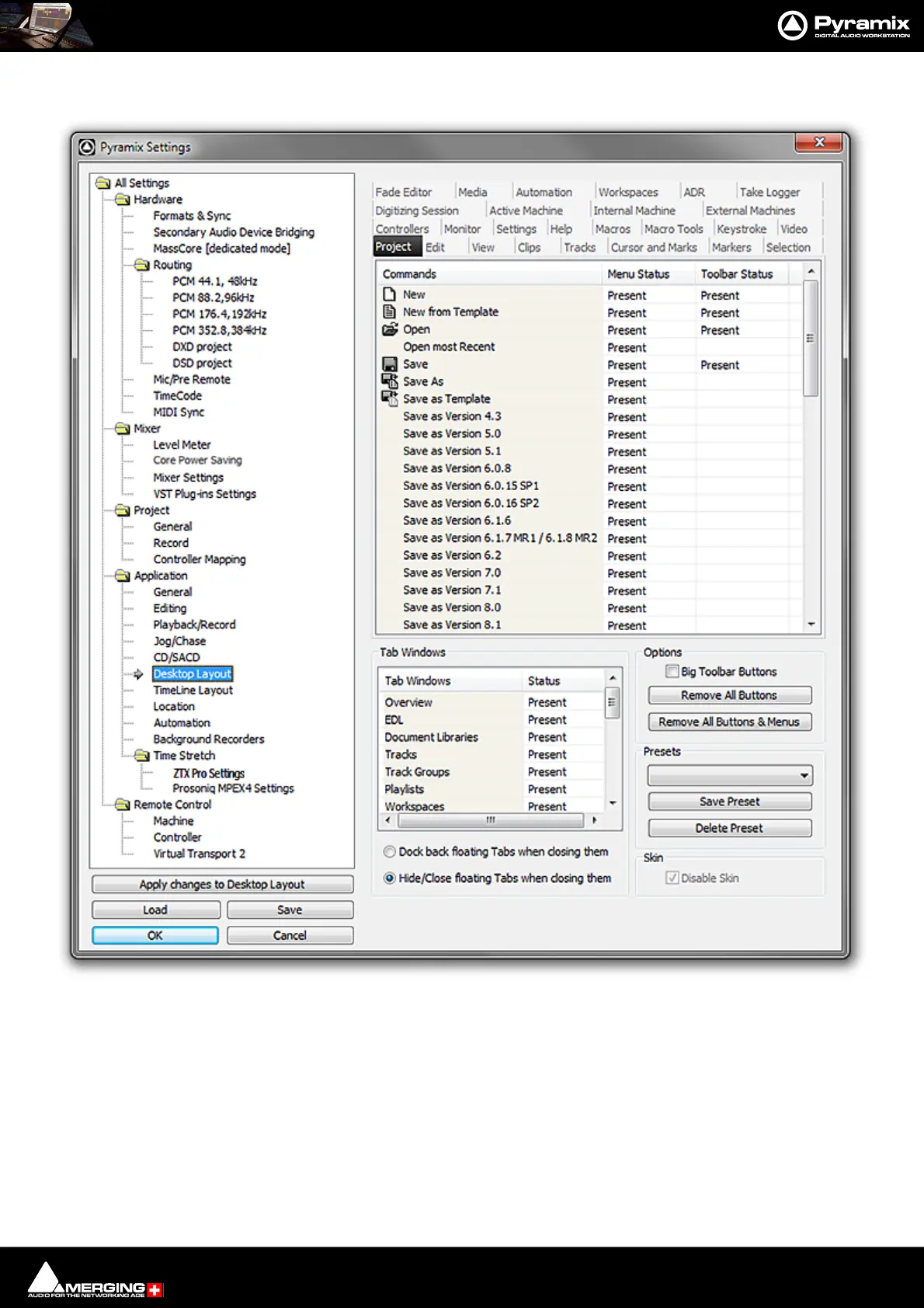 This is where you can customize the content of Menus and Toolbars. Clicking in the Menu Status and Tool bar