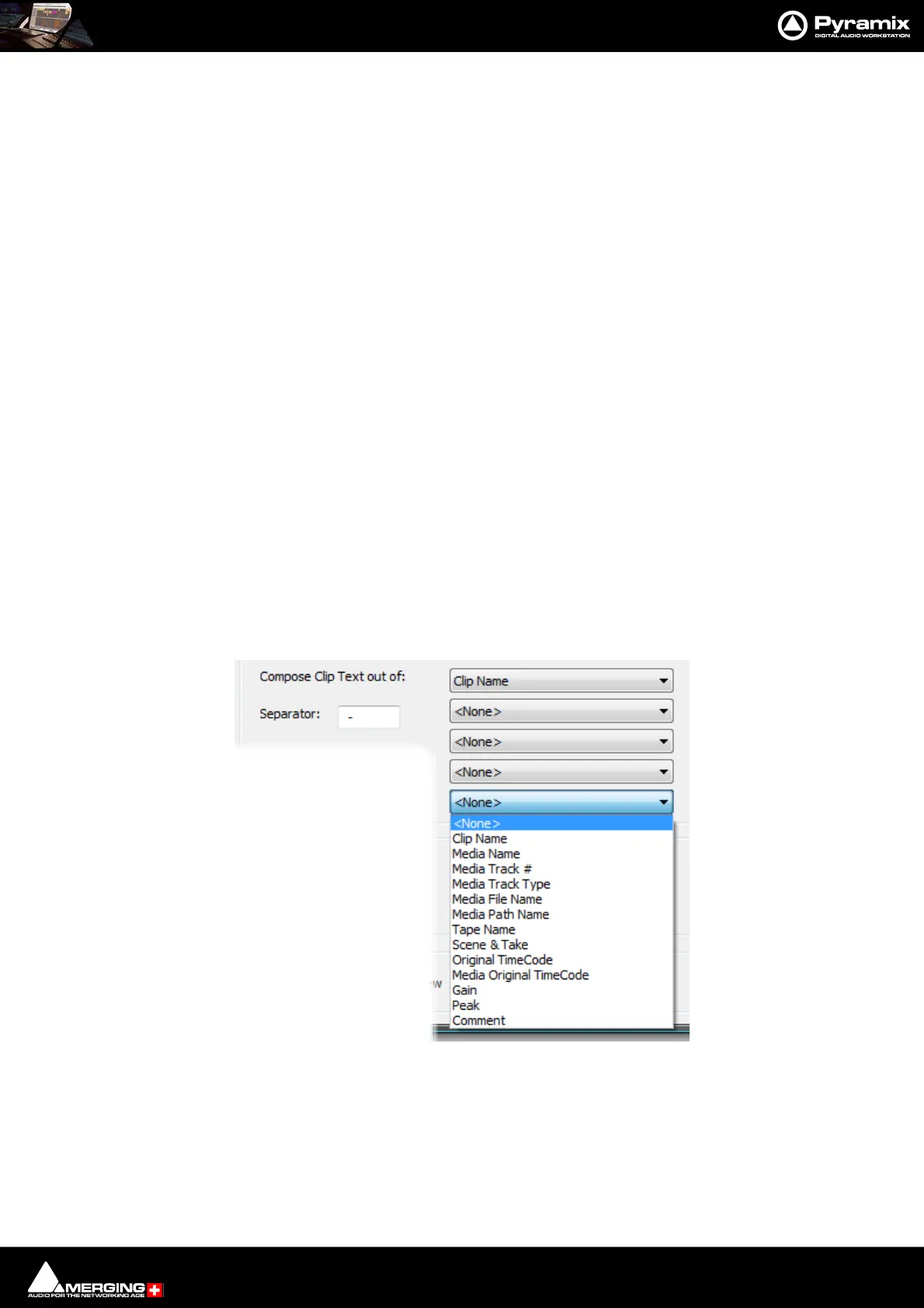 Compose Clip Text out of: The Clip text displayed can consist of up to five elements chosen from the five