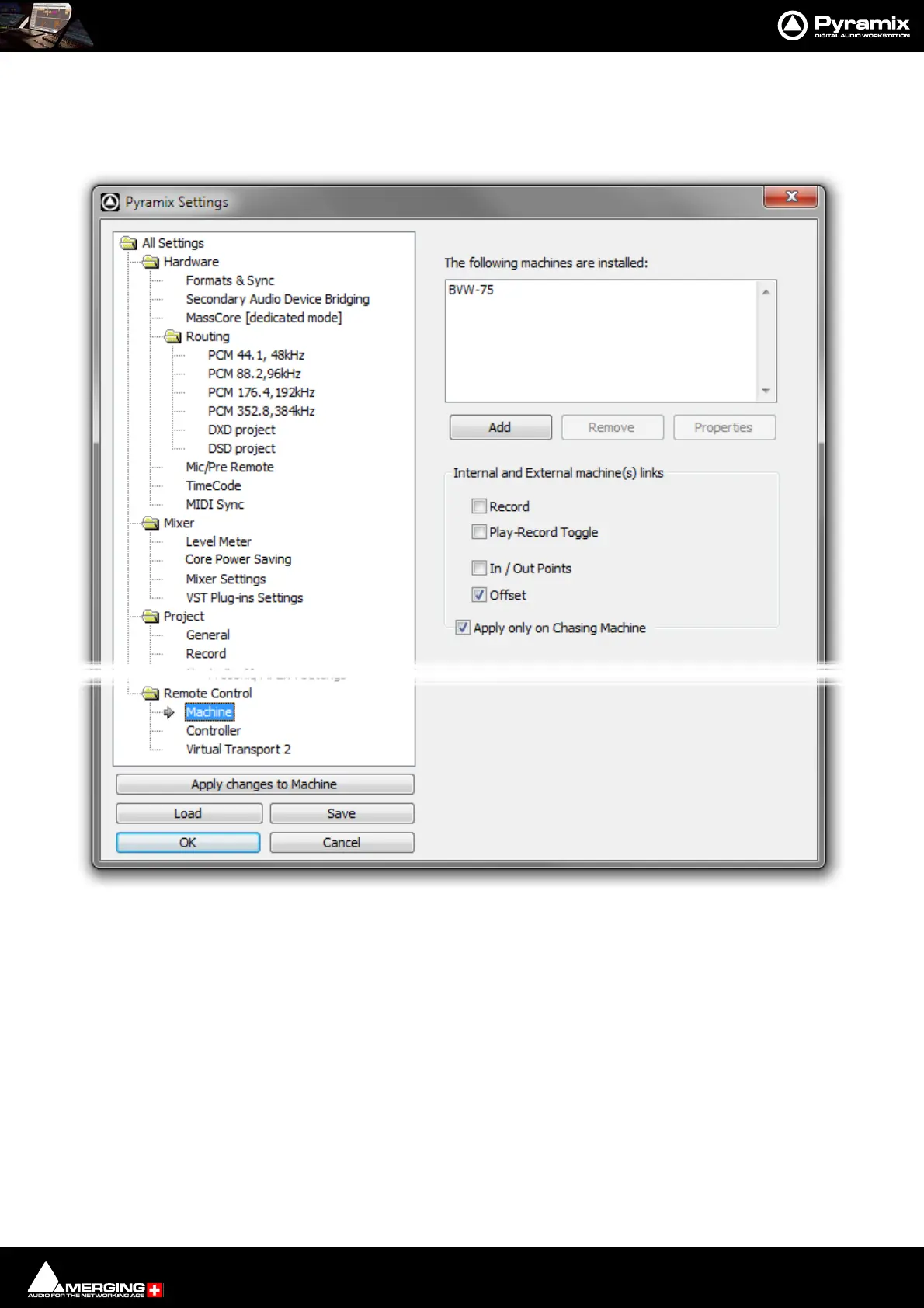 Displays a list of all installed machines. Machines in this list will be available as possible machine choices in the