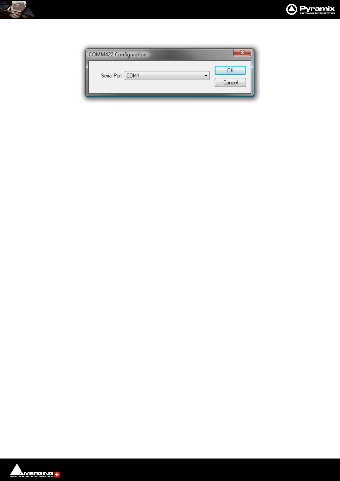 Click OK to confirm the choice. This automatically sets the selected COM port with the proper parameters of the