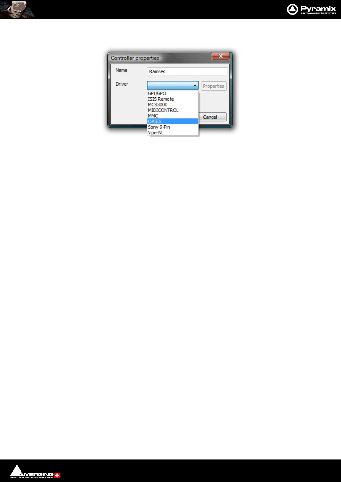 Clicking on Properties will open a configuration dialog specific to the driver.