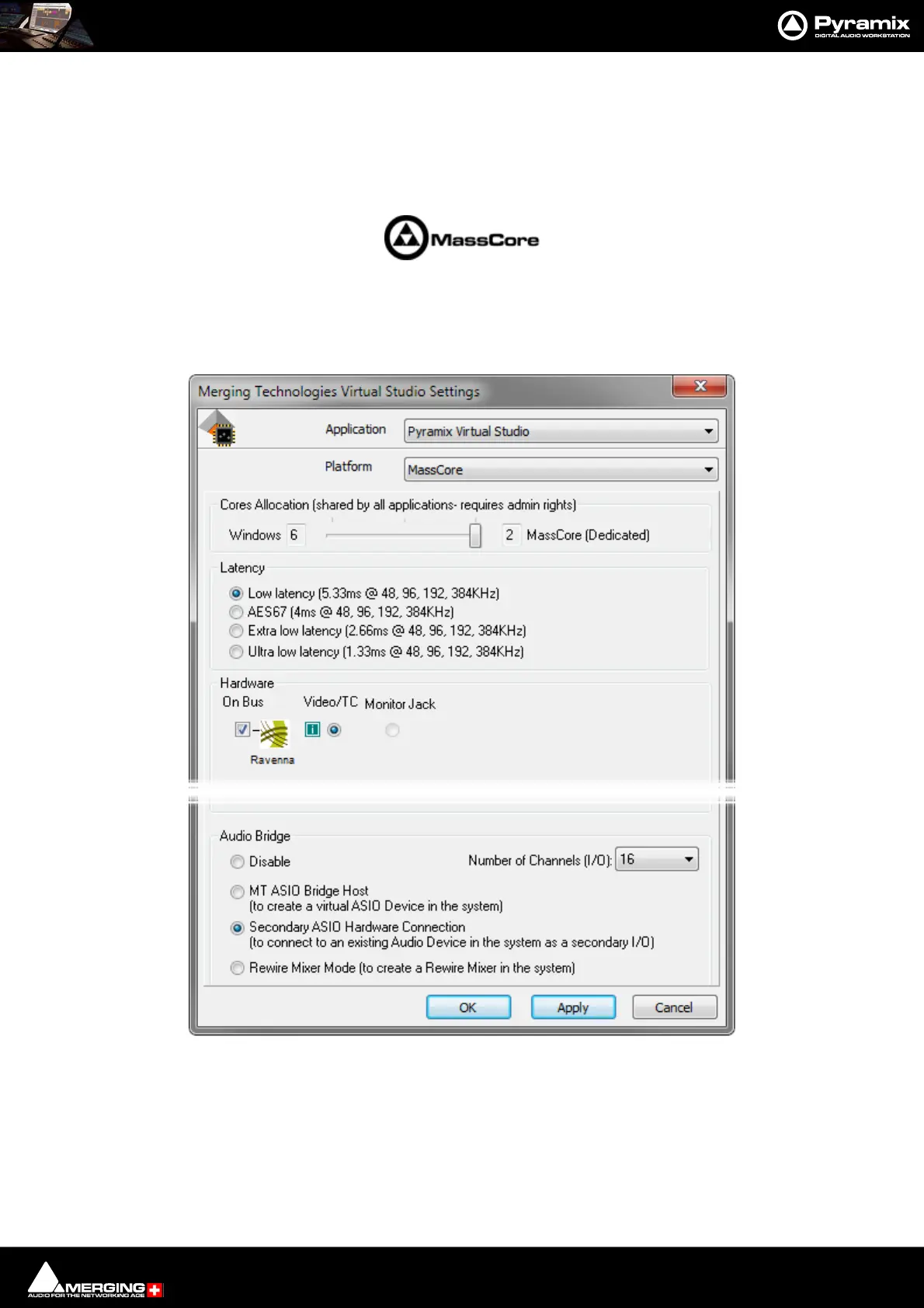 you can set various parameters relating to Merging Technologies hardware and software. If you are running both