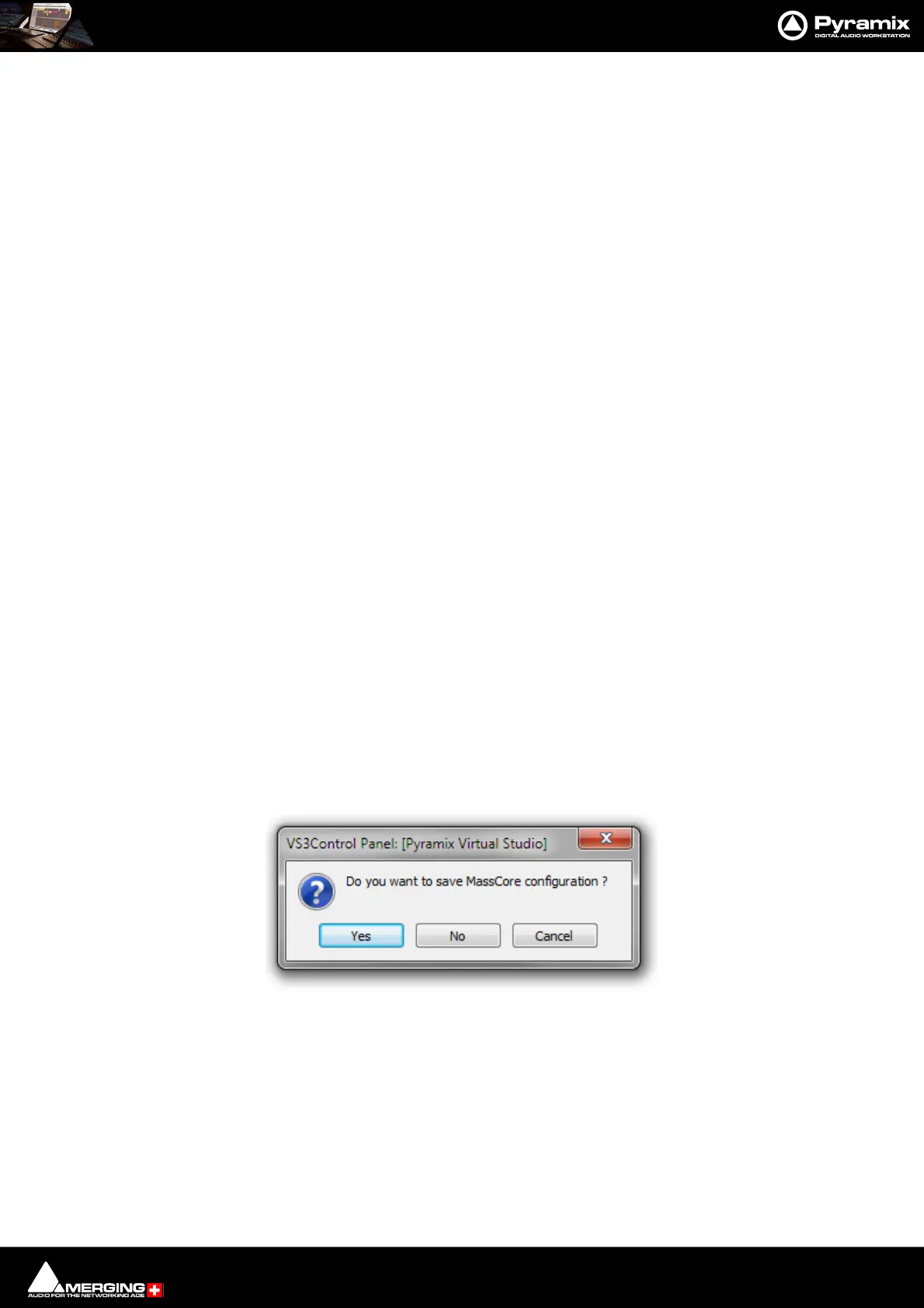 If you change any settings for a given application then clicking on Apply opens the Save MassCore Configura-