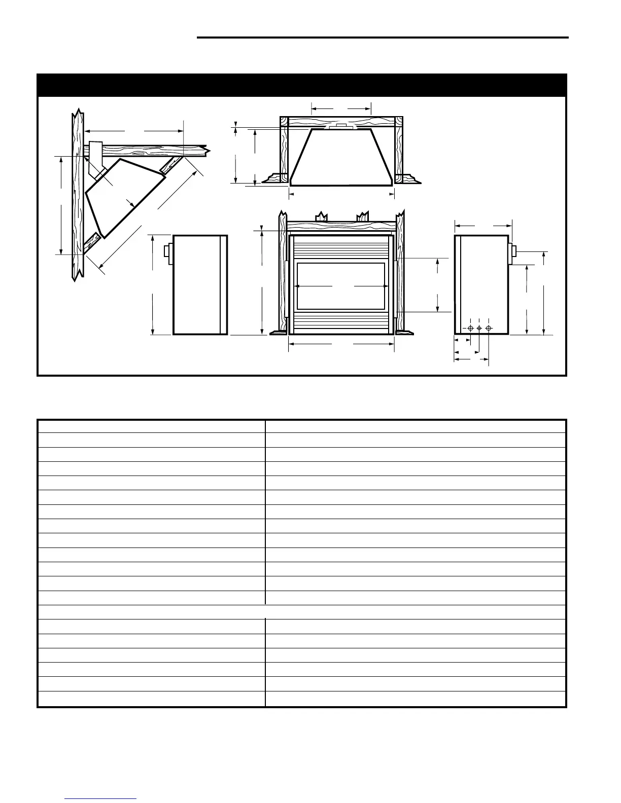 Fig. 2 Fireplace specifications and framing dimensions.