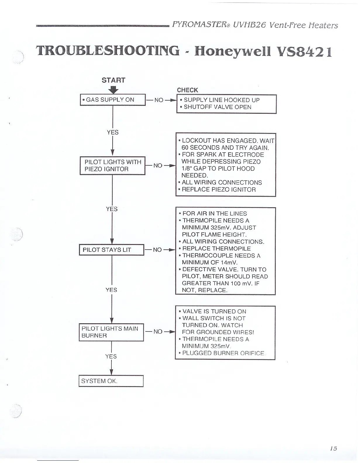 pyromaster UVHB26 - Troubleshooting - Honeywell VS8421