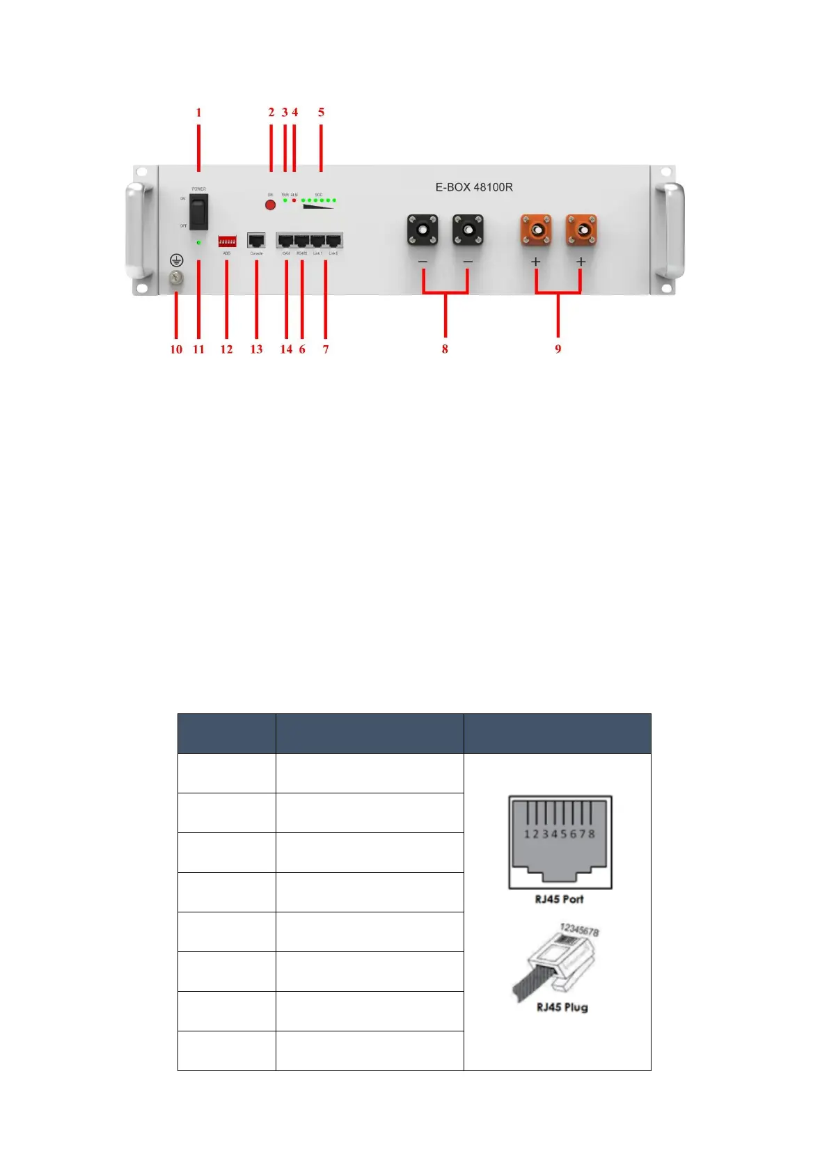 CAN communication terminal (RJ45 port) follow CAN protocol, to transfer battery data.