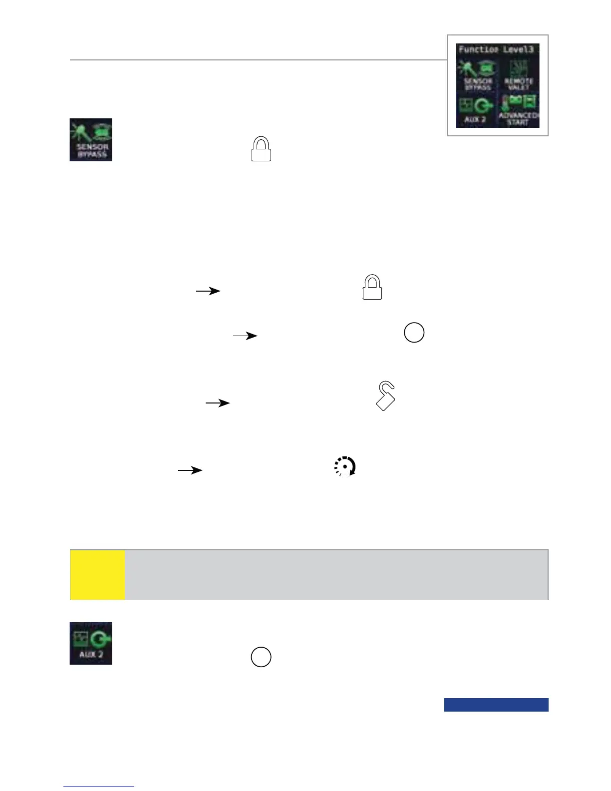The Sensor Bypass menu screen has four options, pressing the appro-