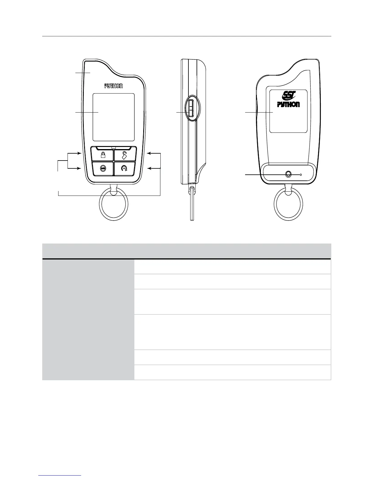 Command buttons (4): Used to perform arming, disarming, auxiliary channel and