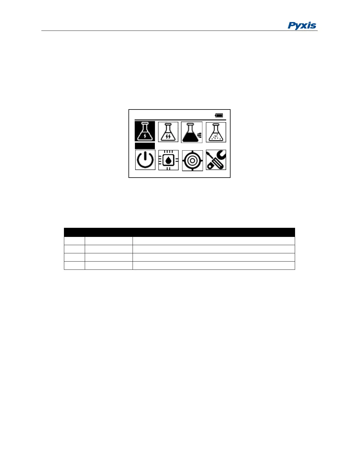 You can navigate the main page menu and launch an operation by pressing on an icon. If battery voltage