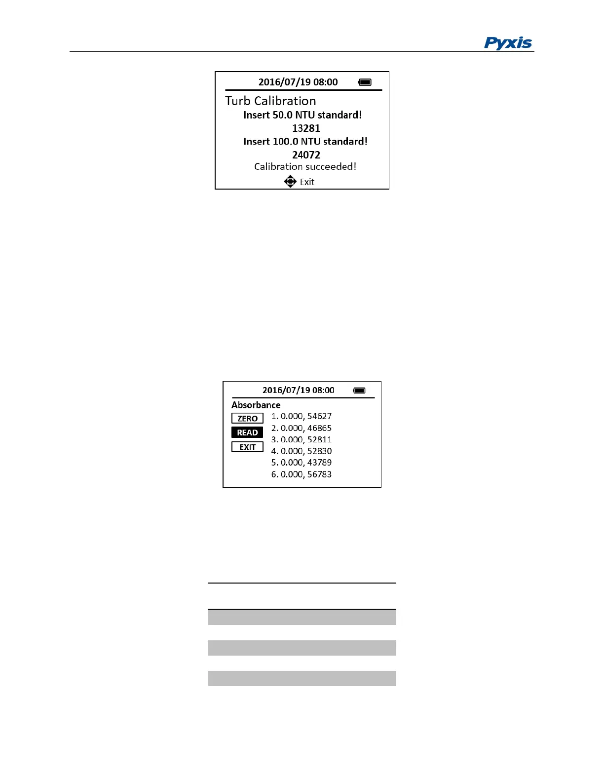 read absorbance. The absorbance values of first 6 wavelengths (Table 3) will be shown. Press