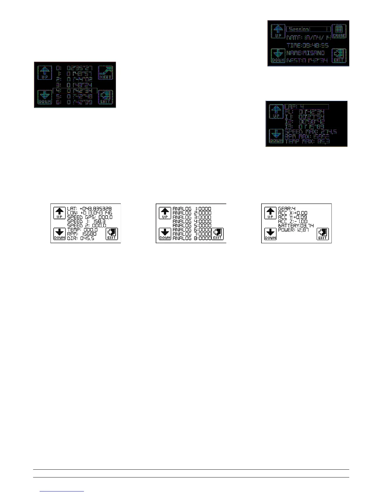 The real time values screen allows you to see all the measurements retrieved by the GPS, all the analogue and digital measurements retrieved by the Box