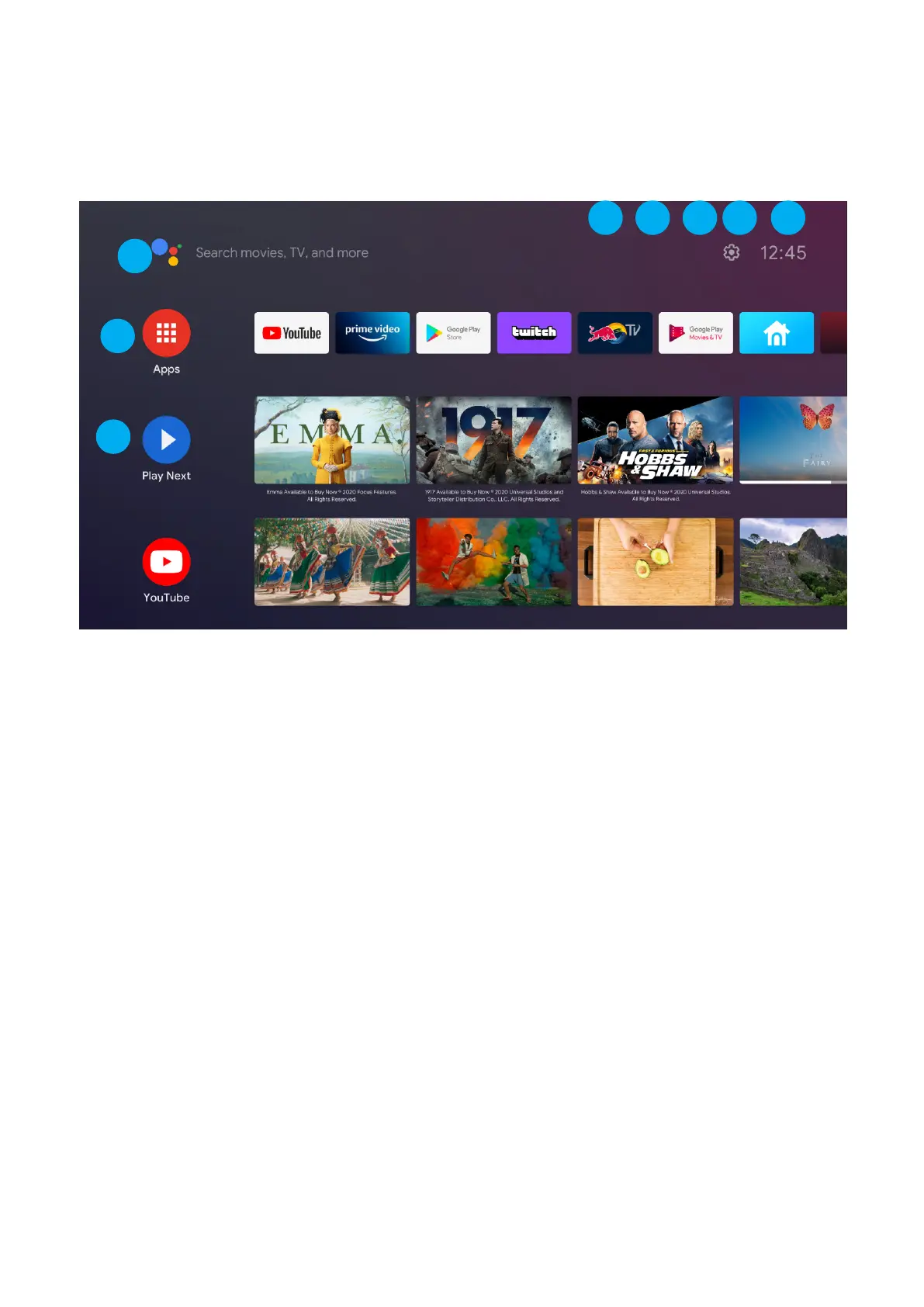 Once you have completed initial setup, you will now enter the ANDROID TV home screen.