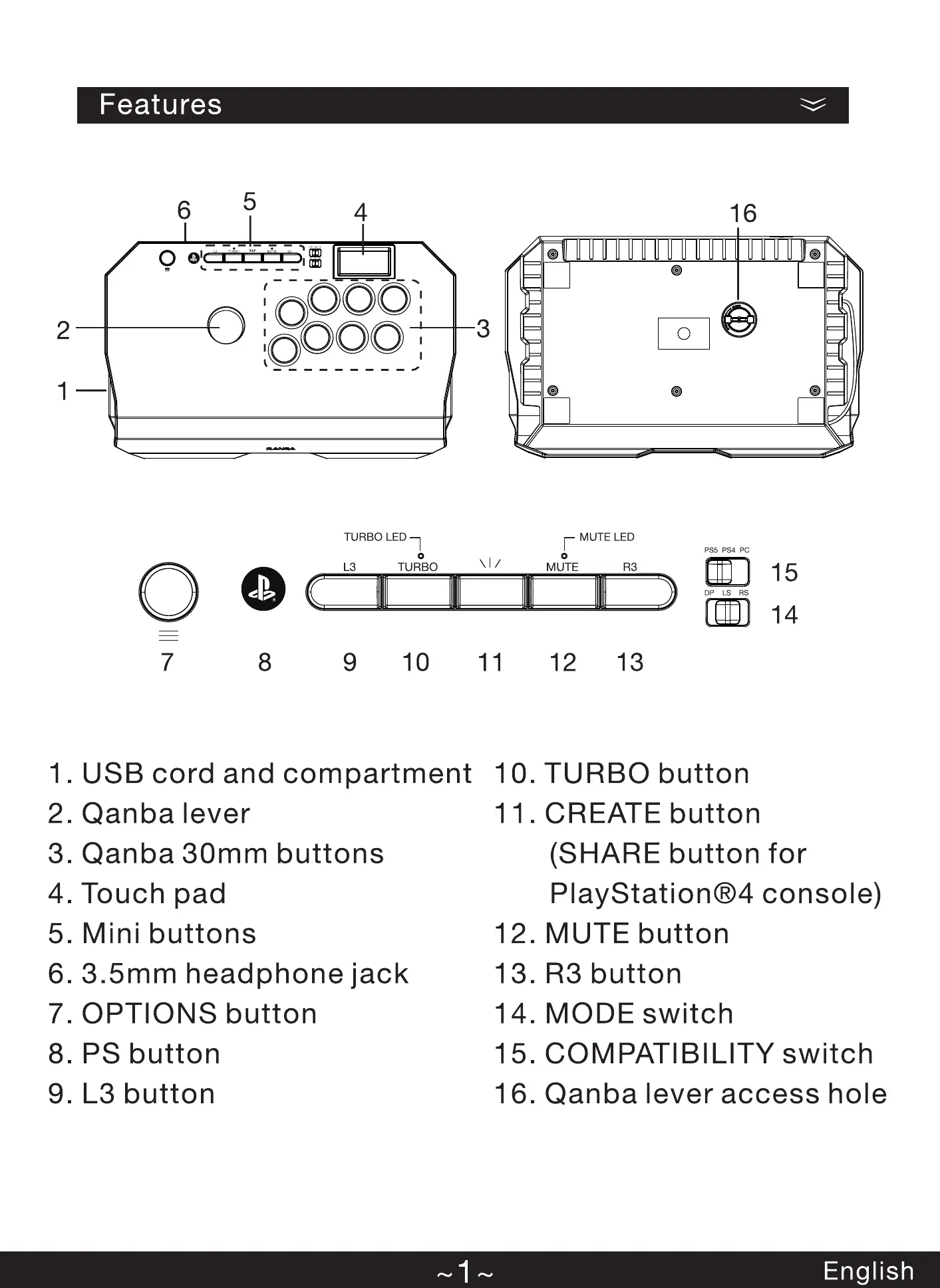 • The Qanba lever (2) can be toggled between three