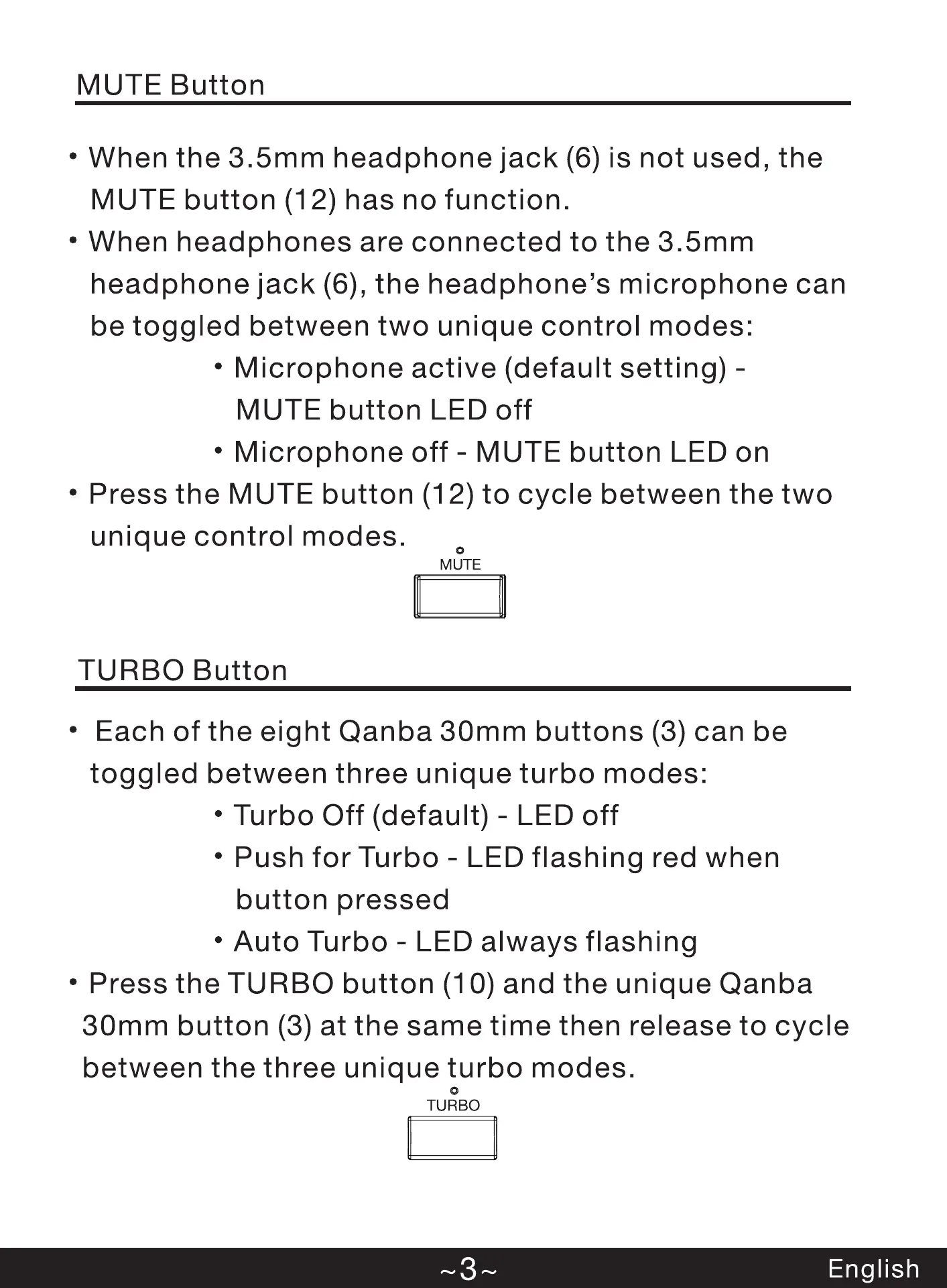 • Each of the eight Qanba 30mm buttons (3) can be