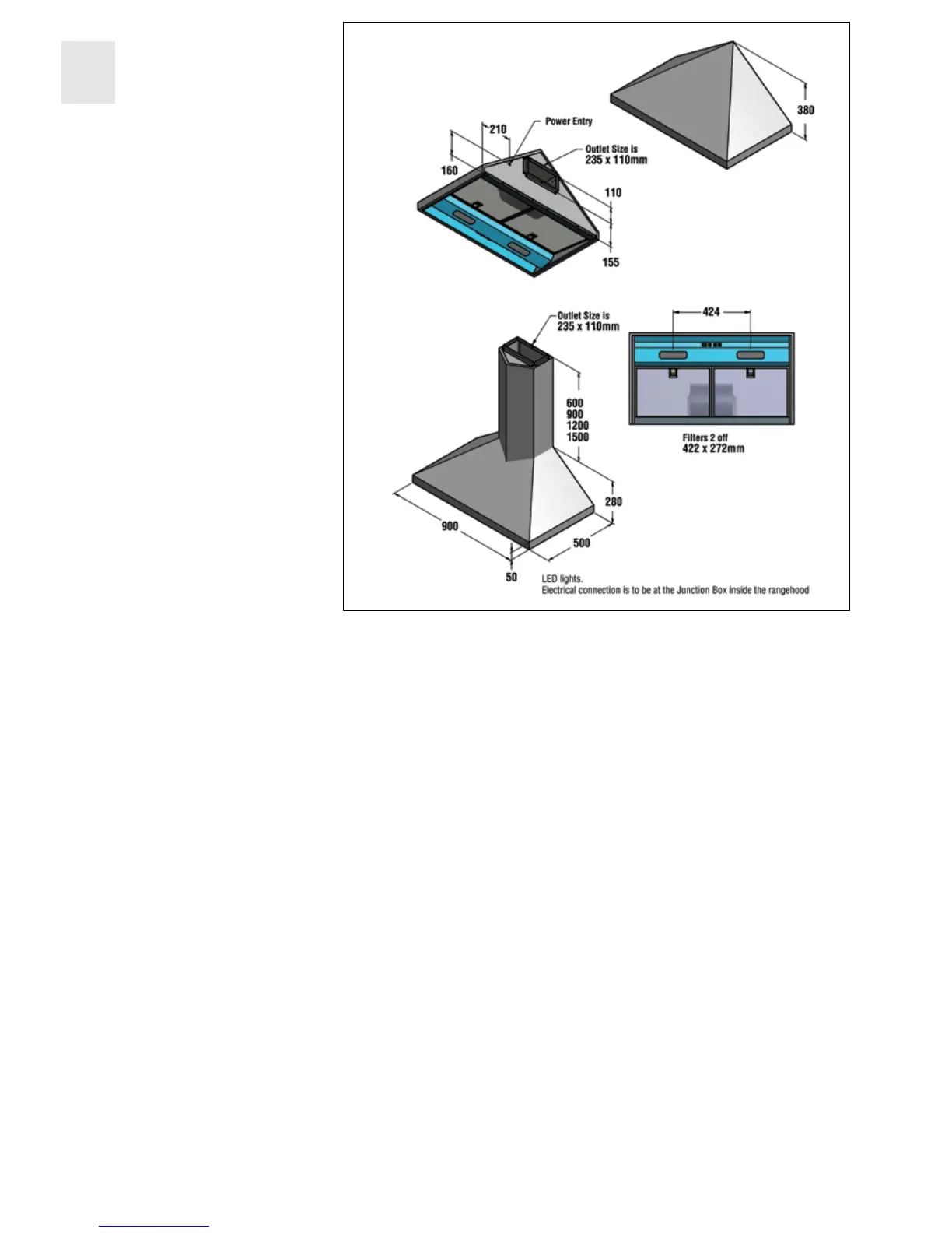 Duct outlet dimension 235 x 110mm