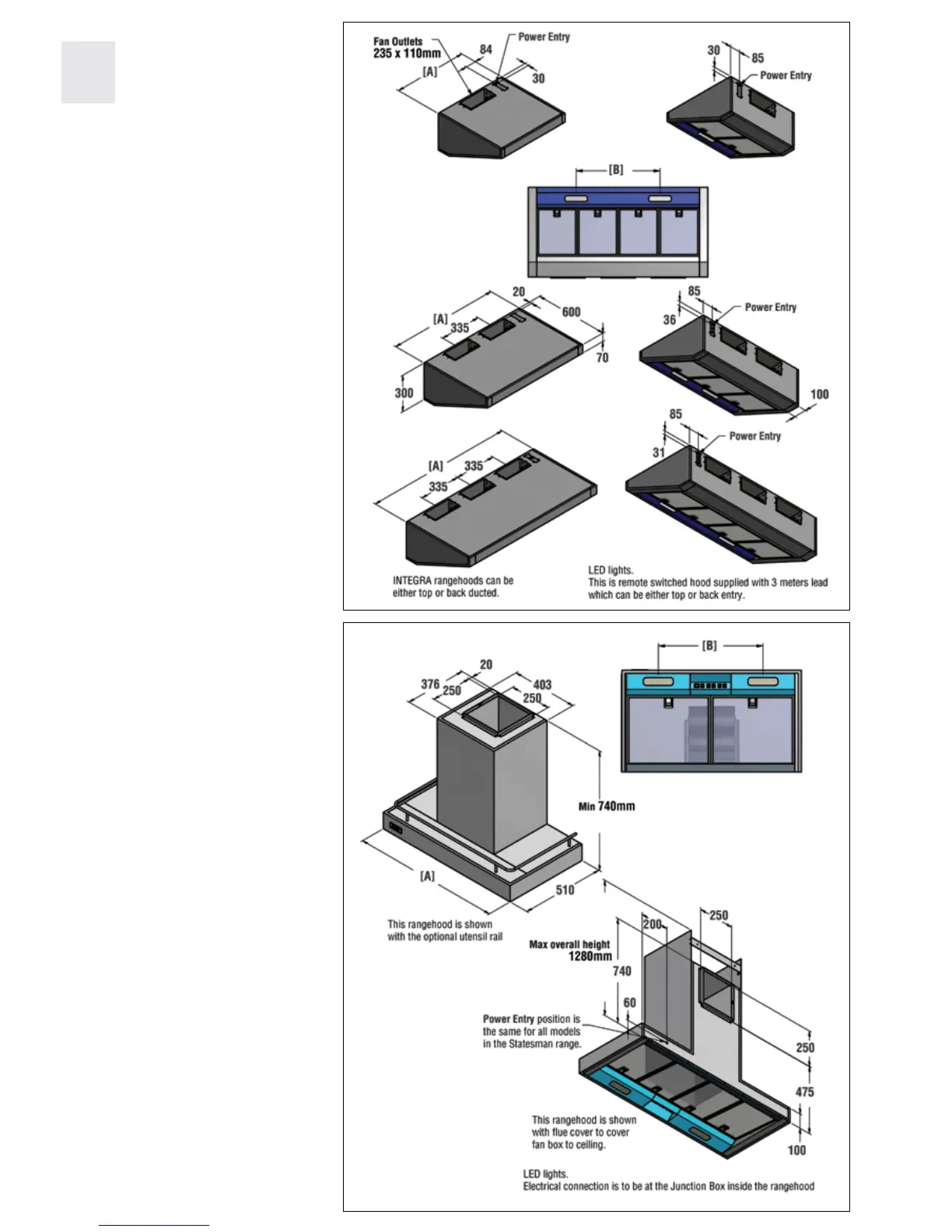 • Duct outlet dimension 235 x 110mm