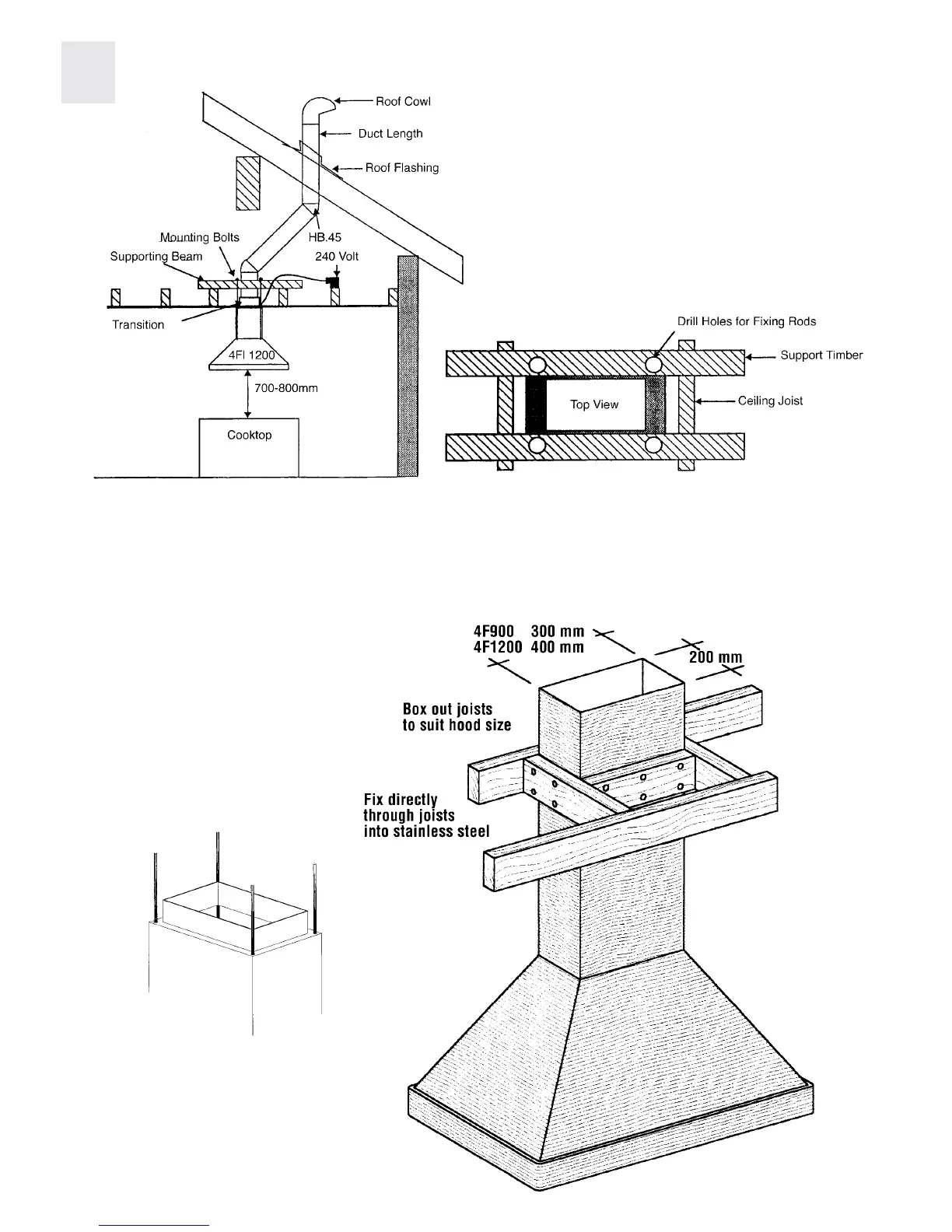 Island hood fixing – for flat, cathedral and exposed beam roofs.