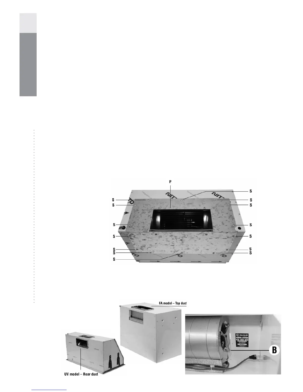 ducting, the fan must be fixed to the top of the unit with the air outlet at the back.