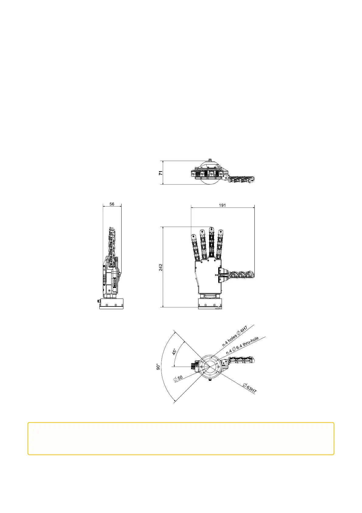 The figurebelow shows the overall dimensions of the qb SoftHand research, valid for both left and right