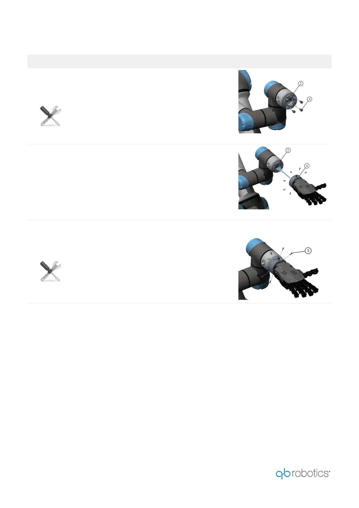 Table 1. — Installation guidelines of the SoftHand research on UR. Referring to the baloons in the