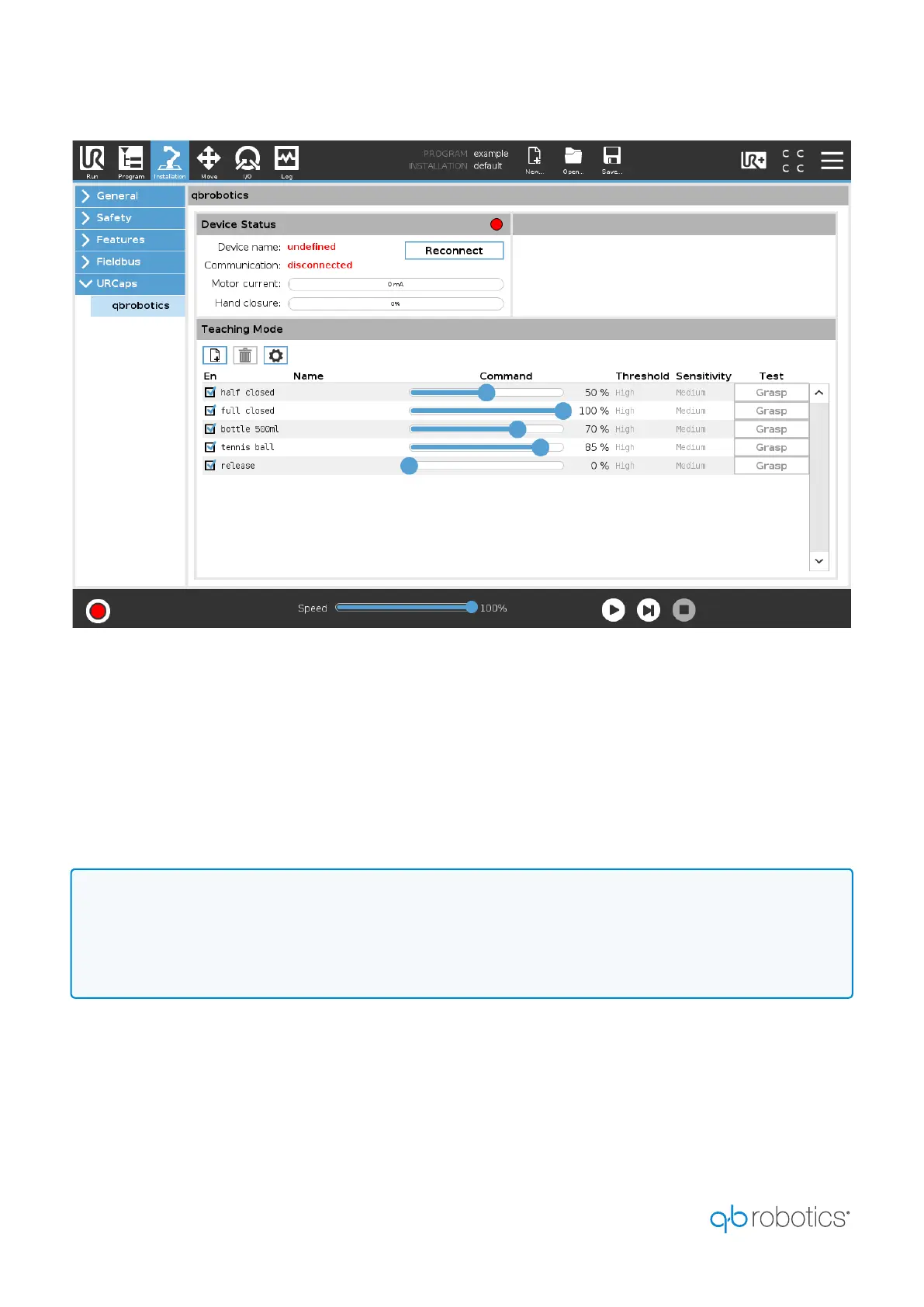 a stored grasp value from the internal database. The value shown in the slider is the one sent to the qb