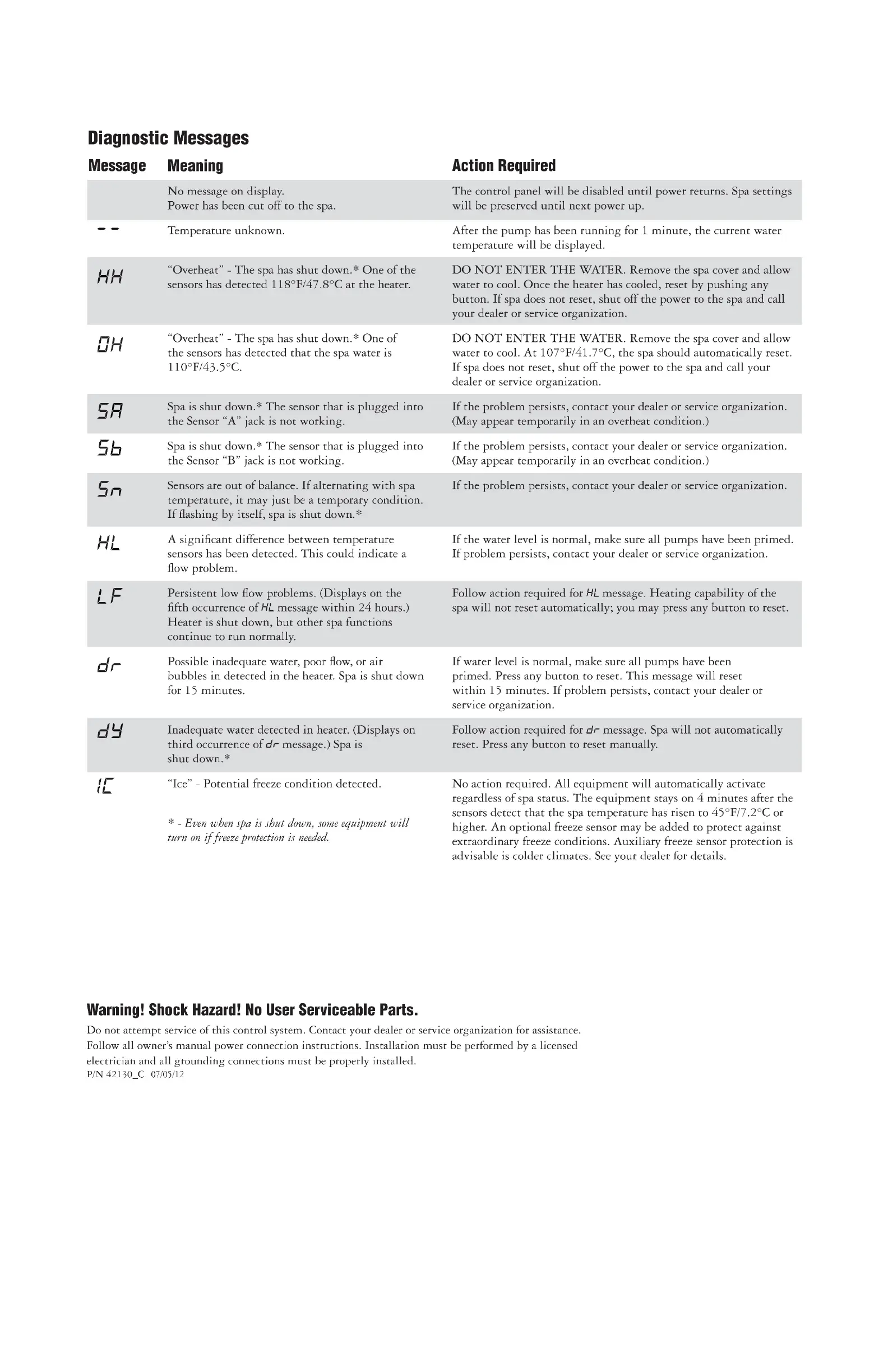 QCA Spa VS100 - Diagnostic Messages