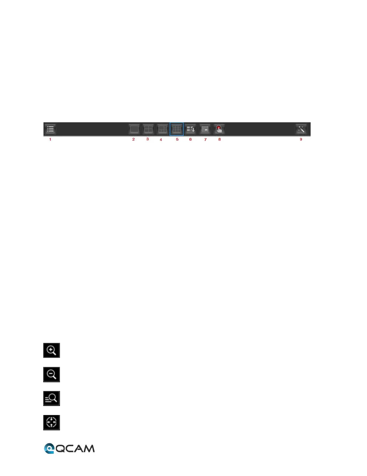 5. Nine Channel Live View: This button opens the nine channel view.