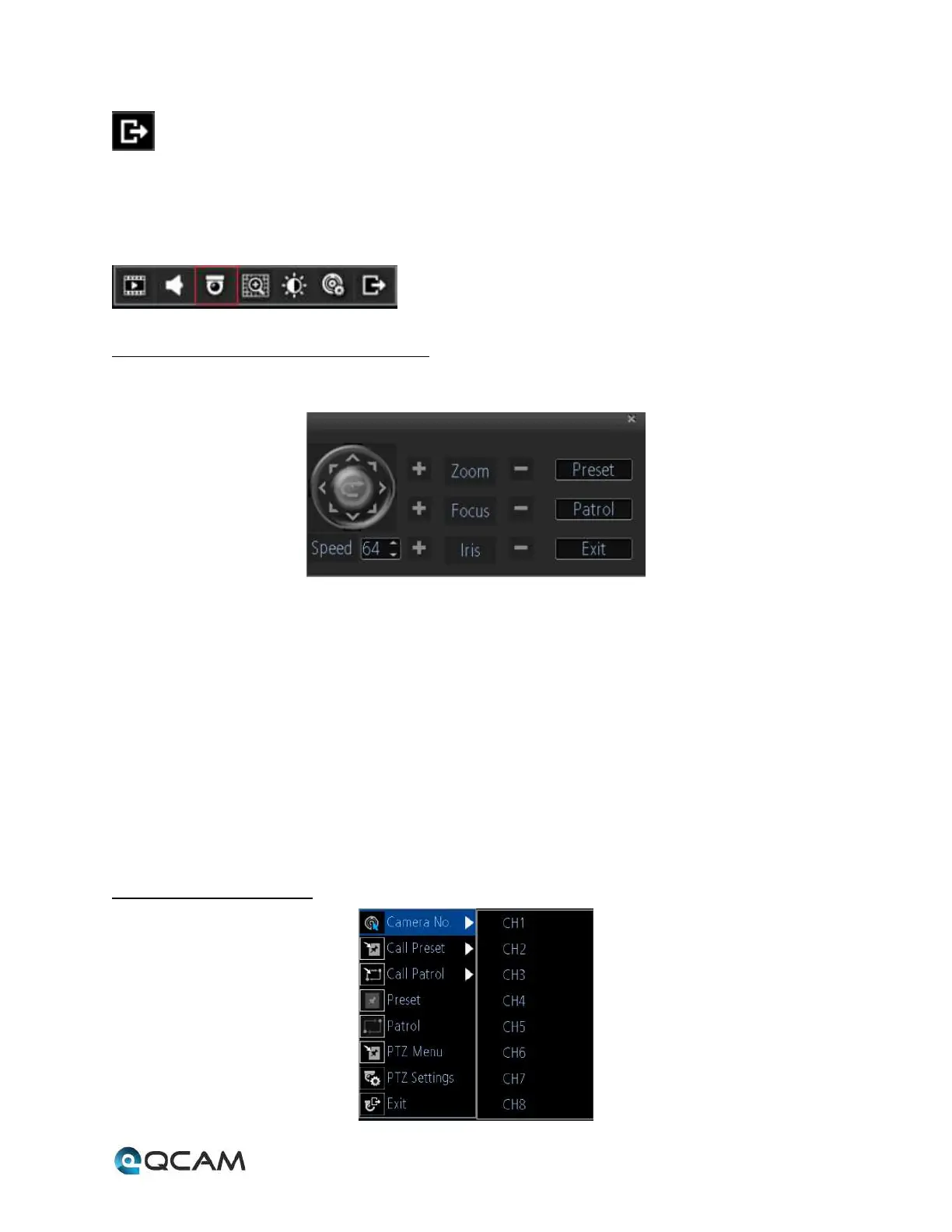 8. Exit: Closes the PTZ controls.