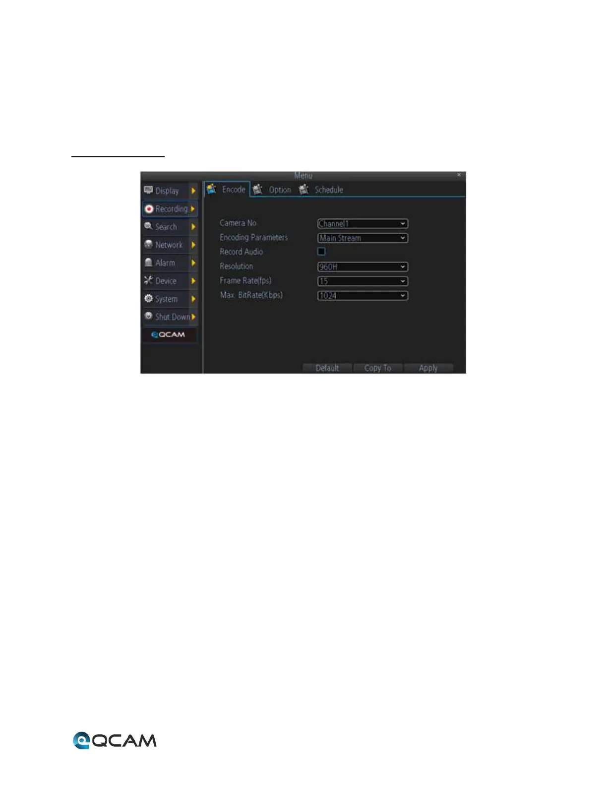 recording menu has 3 tabs: Encode, Option, and Schedule.