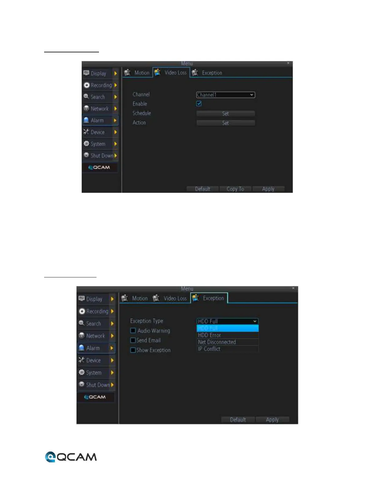 • Enable: This field allows the user to enable video loss detection for the specified channel.