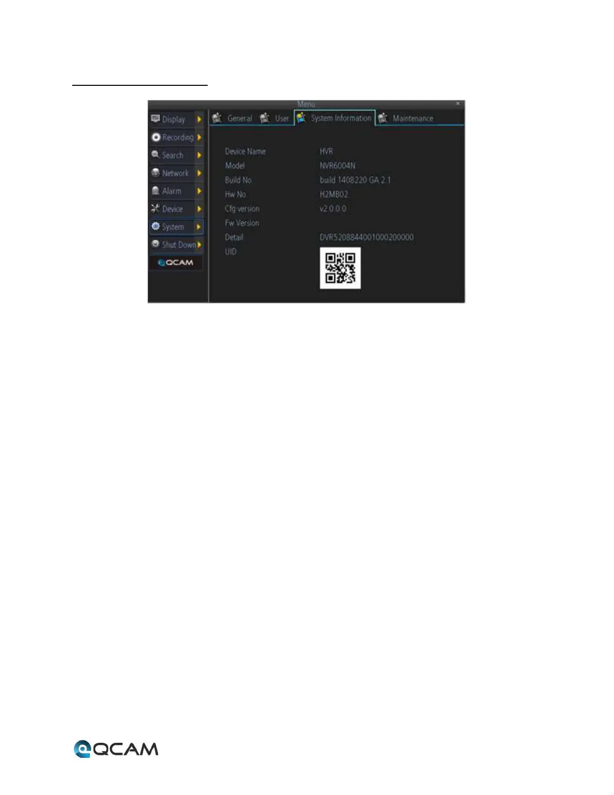 • UID: This image shows the QR code that represents the NVR’s UID.
