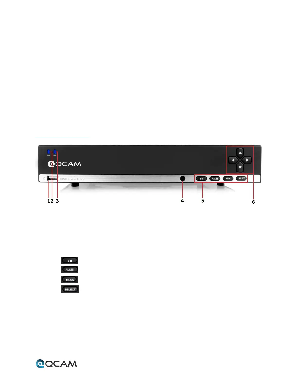 3. HDD: The HDD indicator lights up when the hard drive is active, and flashes rapidly when recording.