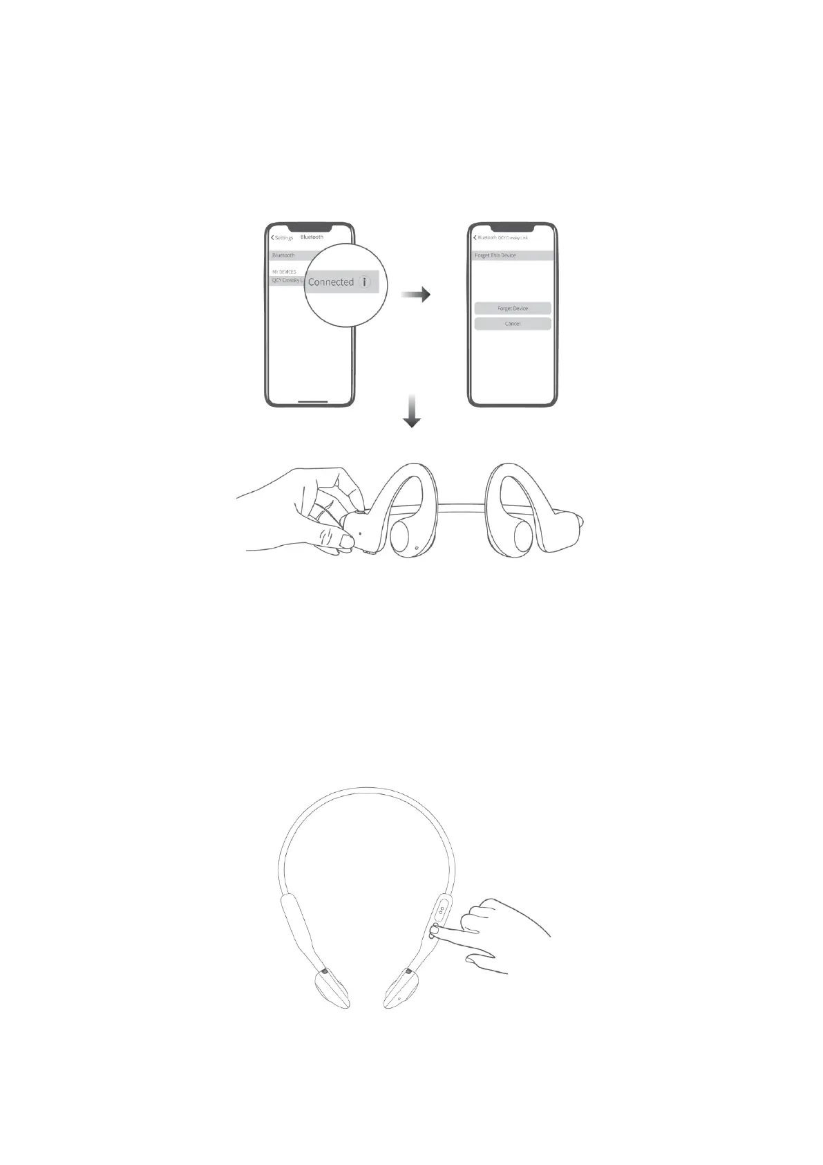 Power on the headset and disconnect it from the device. Then keep pressing the volume
