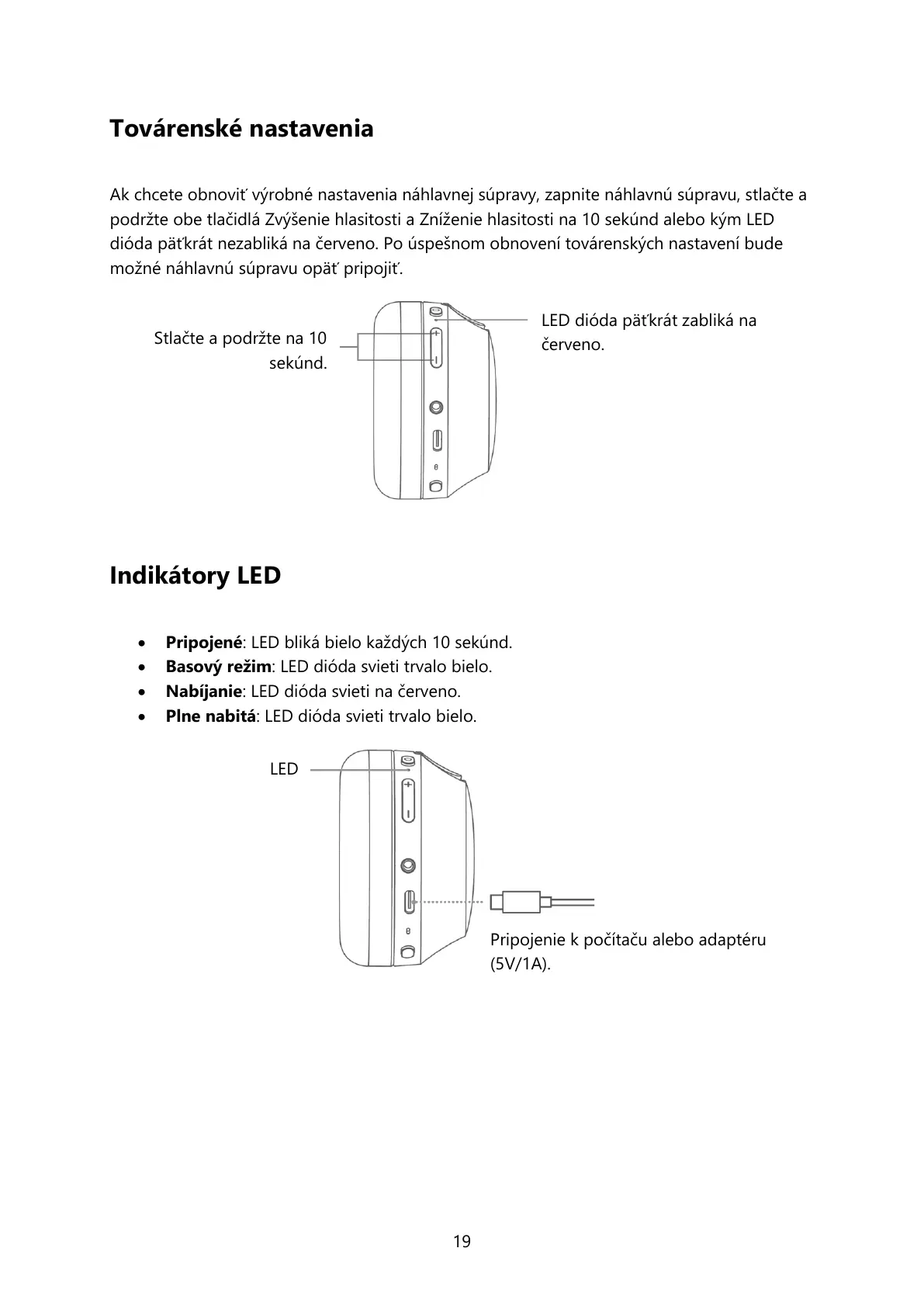 Ak chcete obnoviť výrobné nastavenia náhlavnej súpravy, zapnite náhlavnú súpravu, stlačte a
