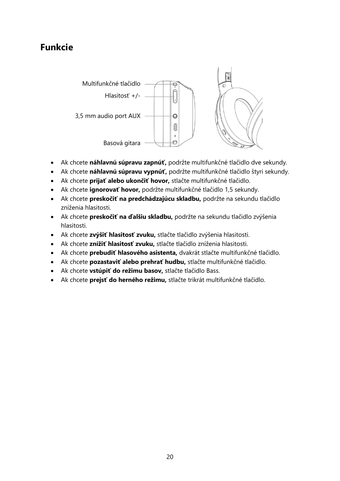 Ak chcete náhlavnú súpravu vypnúť, podržte multifunkčné tlačidlo štyri sekundy.