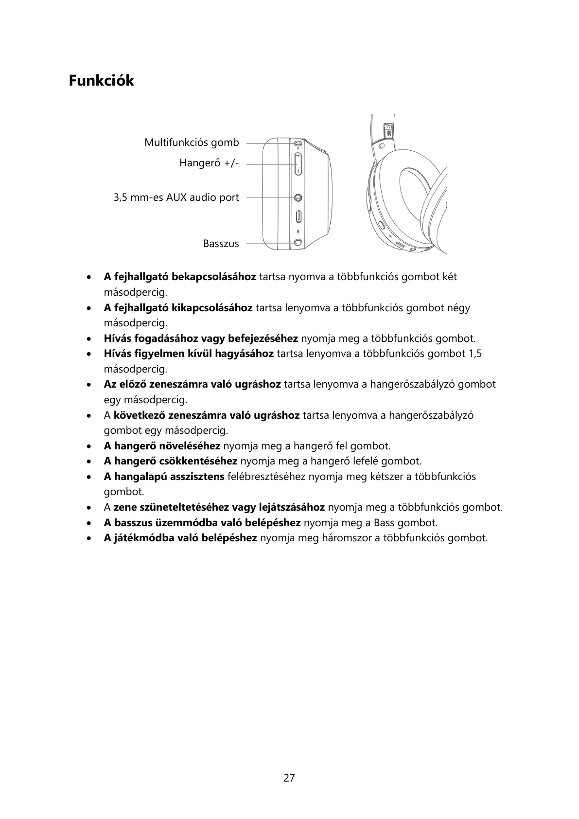 A fejhallgató bekapcsolásához tartsa nyomva a többfunkciós gombot két