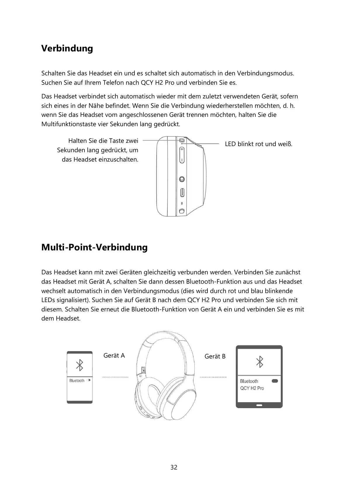 LEDs signalisiert). Suchen Sie auf Gerät B nach dem QCY H2 Pro und verbinden Sie sich mit