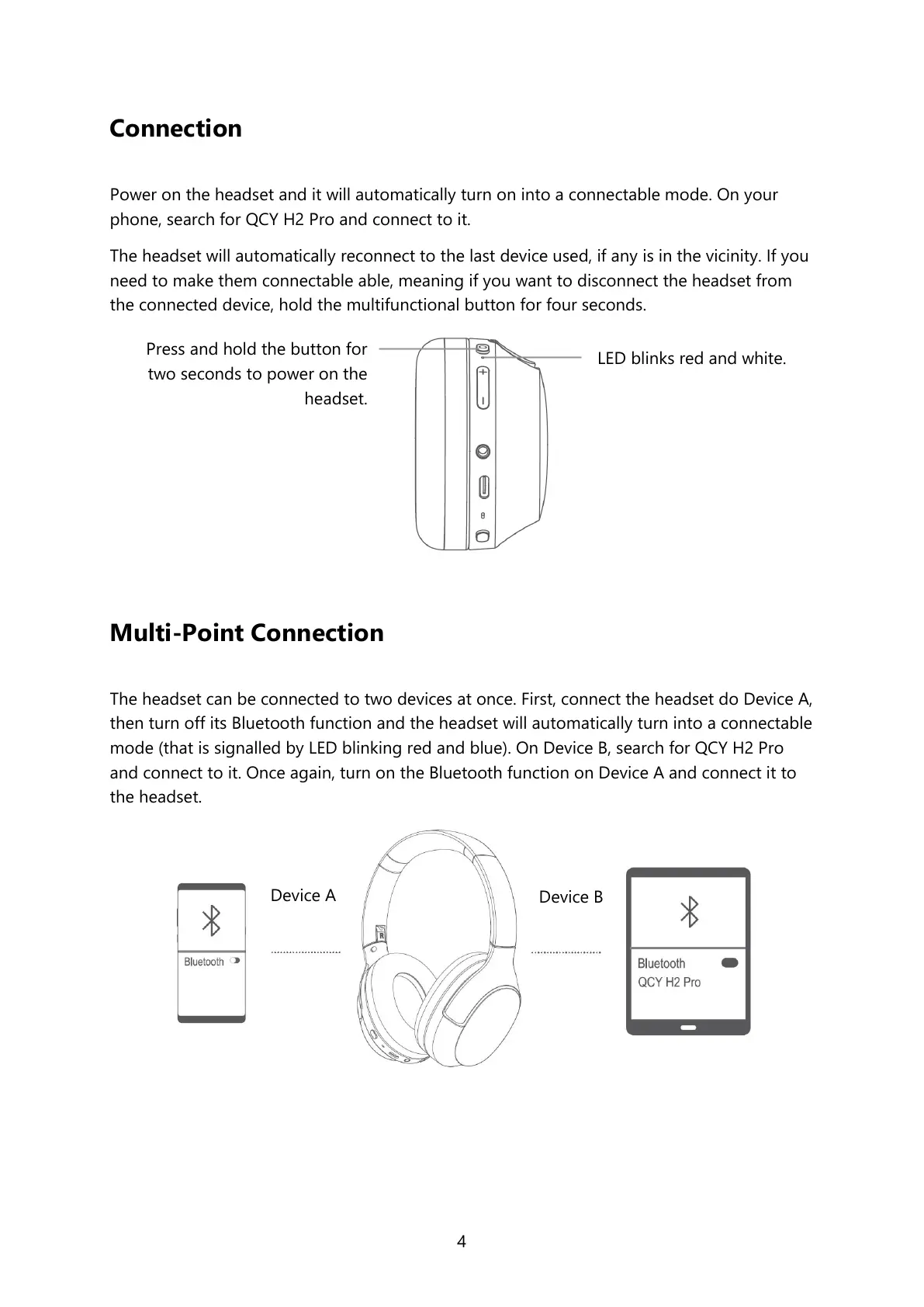 The headset can be connected to two devices at once. First, connect the headset do Device A,