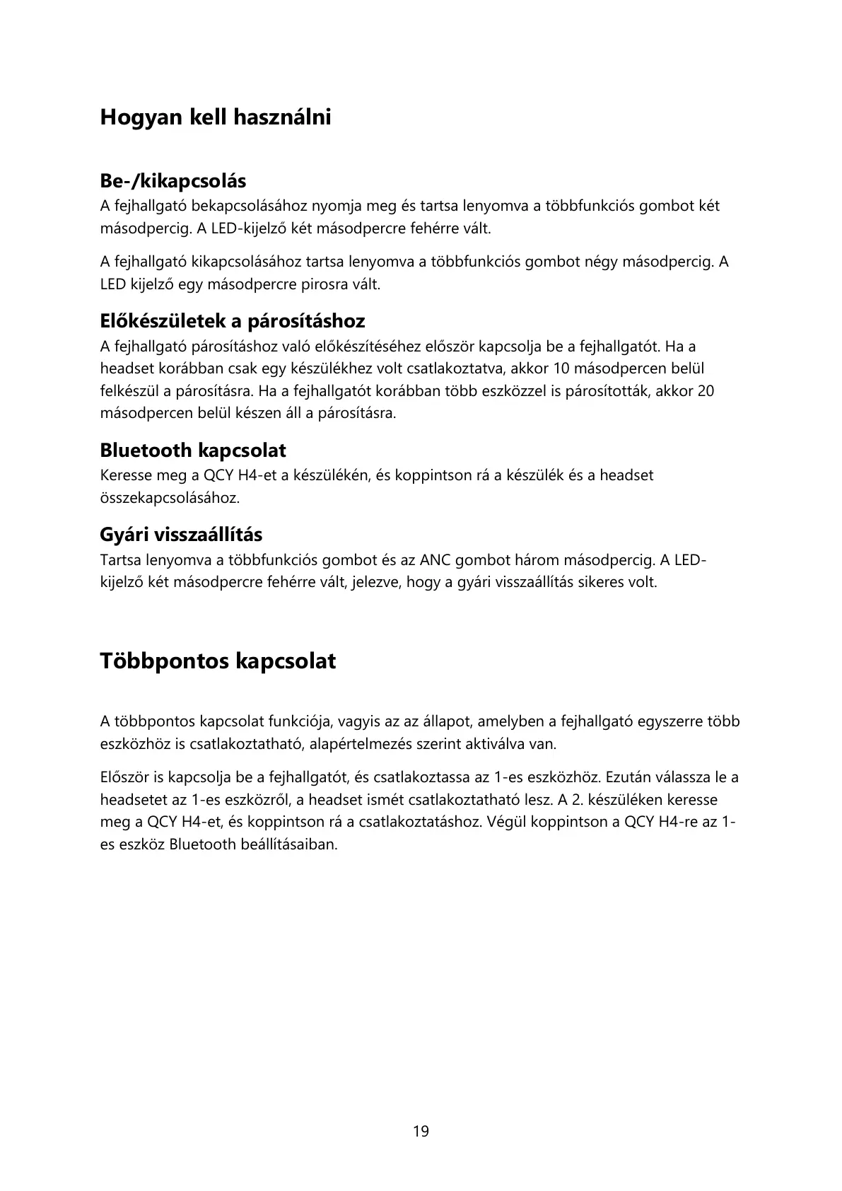 A fejhallgató bekapcsolásához nyomja meg és tartsa lenyomva a többfunkciós gombot két