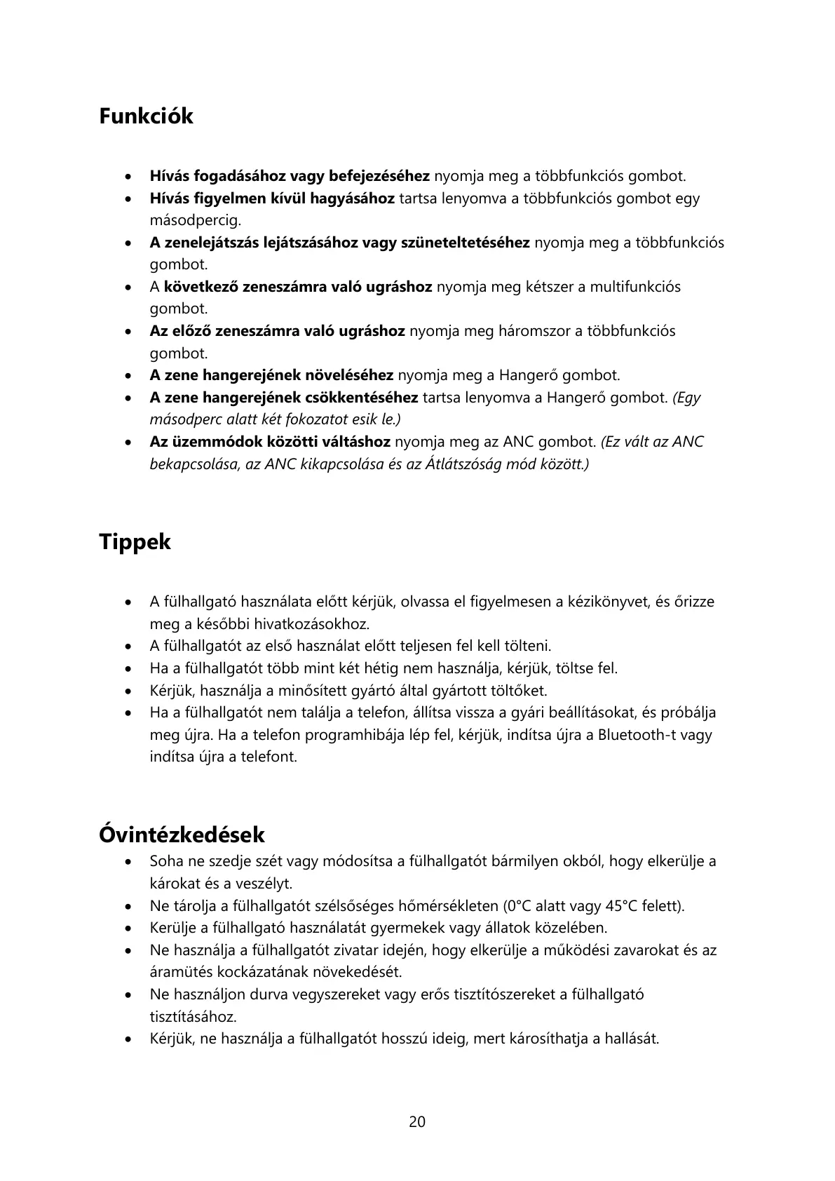 Kérjük, ne használja a fülhallgatót hosszú ideig, mert károsíthatja a hallását.