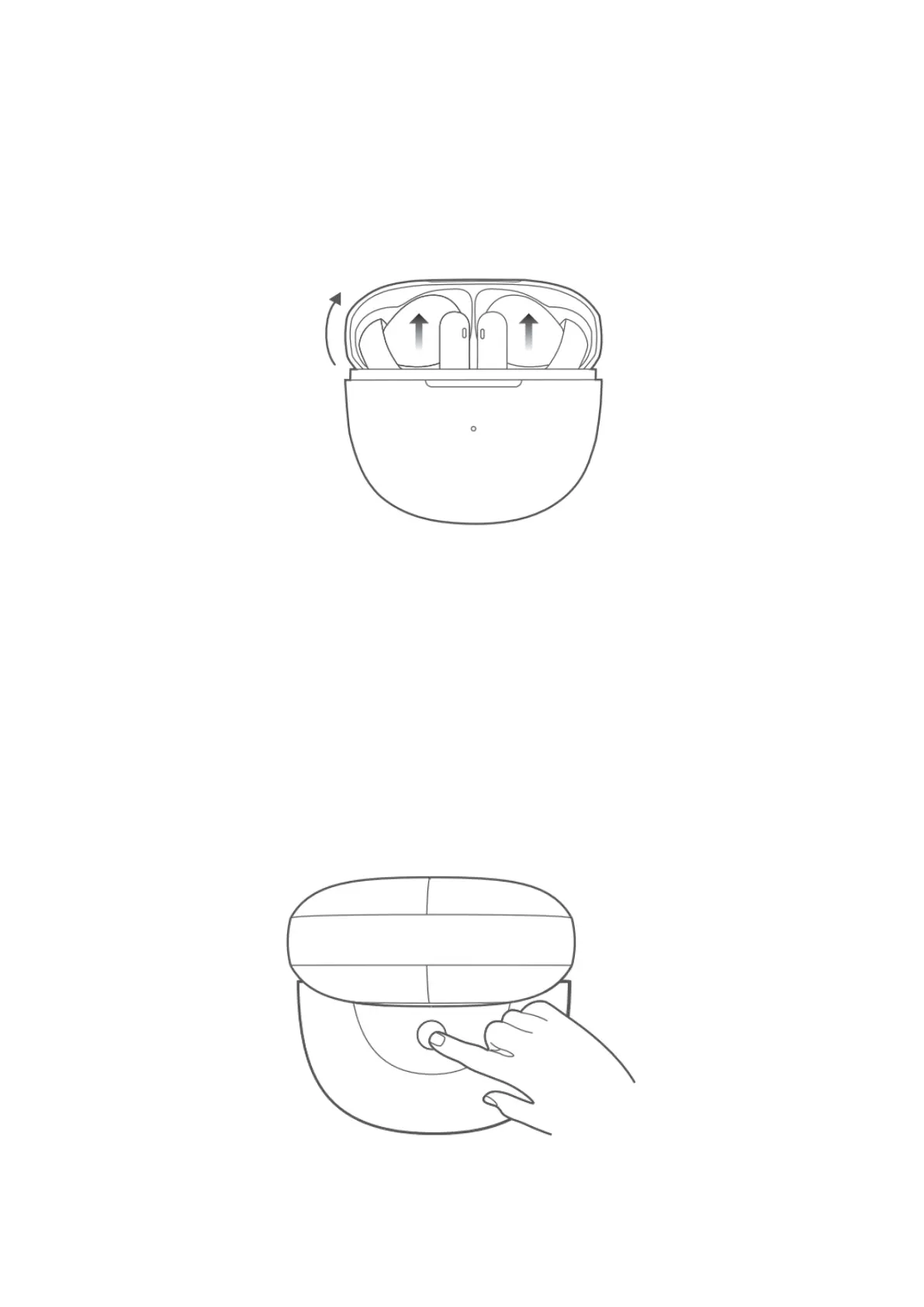 2. Stecken Sie die Earbuds in das Ladecase, öffnen Sie das Ladecase und halten Sie