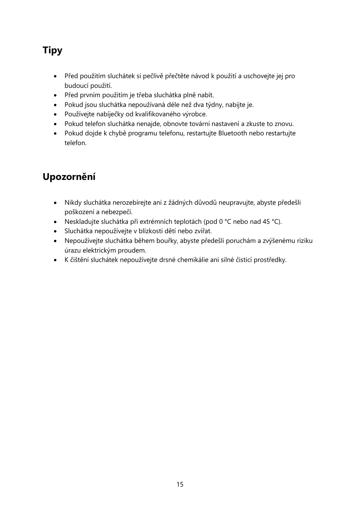 Pokud jsou sluchátka nepoužívaná déle než dva týdny, nabijte je.
