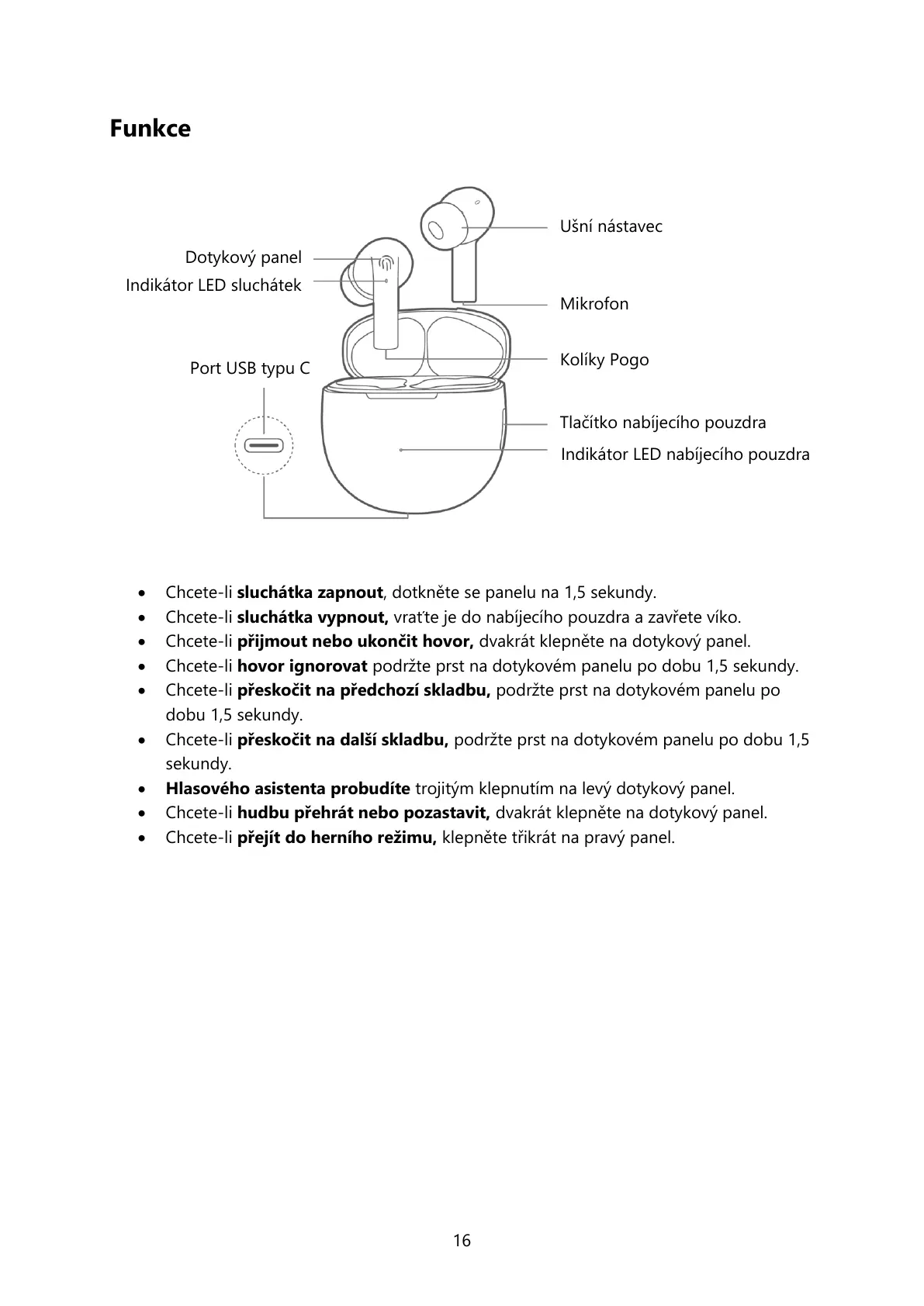 Chcete-li sluchátka zapnout, dotkněte se panelu na 1,5 sekundy.